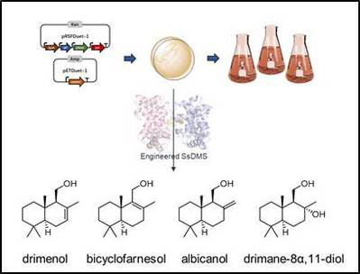 项目利用大肠杆菌高产补身烷型萜类化合物,最终提高补身醇产量至398.4 mg/L,并实现其他补身烷型化合物的高产,其中albicanol最高产量达到3.5 g/L。